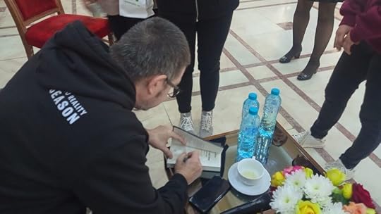 A răspuns tuturor întrebărilor elevilor, fiind impresionat de curiozitatea acestora și de nivelul ridicat al întrebărilor. La final, a oferit autografe celor care au dorit sa achiziționeze volumul „Sălbaticii copii Dingo”, apărut în urmă cu un an.