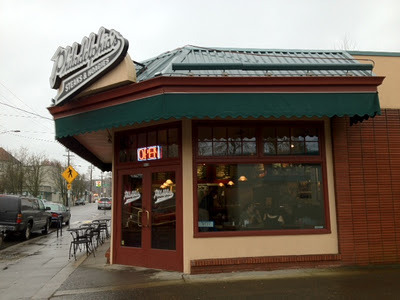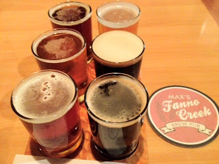 Half Pint, I.P.Yae, Dunkel and I found ourselves running errands around Tigard (it happens), so I seized the opportunity to check out a brewpub no one from Portland really makes the effort to head out there for. Max's Fanno Creek Brew Pub basically is a big ol' family-style pizzeria/sports bar, but with a shiny brewhouse in the front and visible through windows to the right of the entrance. Will you ever see Max there brewing or gladhanding regulars? Evidently not. But while there's no Max, there is a Fanno Creek, which runs to the left of the pub as you're facing it.