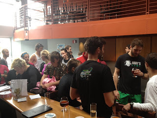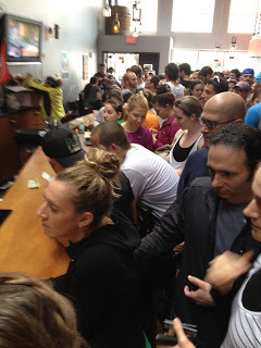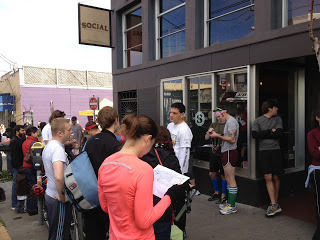 Sure hope Social Brewery steps up, too. Despite ample forewarning from Derrick to brewmaster Rich Higgins, management did not suitably provide sufficient staff (read: the same lone bartender as last year, who earned much respect for his hard work). This is probably the #1 reason Higgins has resigned his post. Still, the large crowd was perfectly friendly, fun, festive, and fermented by early afternoon. Thanks to the gregarious beer runners--many of whom aren't actual beer geeks and made this their only SF Beer Week event, we were told--as well as many generous sponsors who donated beer and running prizes for a new element added to the Beer Run, a fundraising raffle that raised hundreds of dollars for Autism Speaks and the Contra Costa Food Bank (the late Bill Brand's preferred local nonprofit).