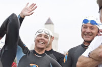I guess more accurately it starts with finishing my first triathlon down in Santa Barbara. To get the full story on how I got into running, which led to the idea to go from marathoner to triathlete, click here. I completed (though not competed) it with Half Pint, Papa Yaeger...