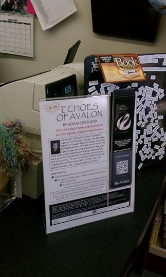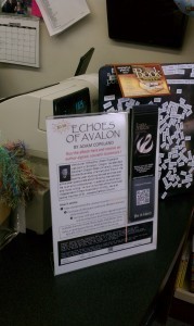 New copies of Echoes of Avalon are available at Vancouver's most venerable independent bookstore, Vintage Books. The paperback is on the shelf and on the counter is a display holding author-signed souvenir bookmarks that can be bought with coupon codes for downloading the eBook.