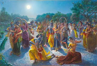 This is a roseate sonnet on the Ras Lila. The roseate sonnet consists of three quatrains and a rhyming couplet. The first letters of the last quatrain begin with R O S E and hence the name Roseate sonnet.