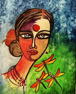 <!-- /* Font Definitions */ @font-face {font-family:"MS 明朝"; panose-1:0 0 0 0 0 0 0 0 0 0; mso-font-charset:128; mso-generic-font-family:roman; mso-font-format:other; mso-font-pitch:fixed; mso-font-signature:1 134676480 16 0 131072 0;} @font-face {font-family:"MS 明朝"; panose-1:0 0 0 0 0 0 0 0 0 0; mso-font-charset:128; mso-generic-font-family:roman; mso-font-format:other; mso-font-pitch:fixed; mso-font-signature:1 134676480 16 0 131072 0;} @font-face {font-family:Cambria; panose-1:2 4 5 3 5 4 6 3 2 4; mso-font-charset:0; mso-generic-font-family:auto; mso-font-pitch:variable; mso-font-signature:-536870145 1073743103 0 0 415 0;} /* Style Definitions */ p.MsoNormal, li.MsoNormal, div.MsoNormal {mso-style-unhide:no; mso-style-qformat:yes; mso-style-parent:""; margin:0cm; margin-bottom:.0001pt; mso-pagination:widow-orphan; font-size:12.0pt; font-family:Cambria; mso-ascii-font-family:Cambria; mso-ascii-theme-font:minor-latin; mso-fareast-font-family:"MS 明朝"; mso-fareast-theme-font:minor-fareast; mso-hansi-font-family:Cambria; mso-hansi-theme-font:minor-latin; mso-bidi-font-family:"Times New Roman"; mso-bidi-theme-font:minor-bidi;} .MsoChpDefault {mso-style-type:export-only; mso-default-props:yes; font-family:Cambria; mso-ascii-font-family:Cambria; mso-ascii-theme-font:minor-latin; mso-fareast-font-family:"MS 明朝"; mso-fareast-theme-font:minor-fareast; mso-hansi-font-family:Cambria; mso-hansi-theme-font:minor-latin; mso-bidi-font-family:"Times New Roman"; mso-bidi-theme-font:minor-bidi;} @page WordSection1 {size:595.0pt 842.0pt; margin:72.0pt 90.0pt 72.0pt 90.0pt; mso-header-margin:35.4pt; mso-footer-margin:35.4pt; mso-paper-source:0;} div.WordSection1 {page:WordSection1;} </style></div>--> <div class="MsoNormal"><span style="mso-bidi-font-family: "Times New Roman"; mso-fareast-font-family: "Times New Roman";">I spied her among the forest trees<br />Her soft humming echoing in the dusk’s stillness<br />A forest nymph swathed in green georgette<br />Hiding her long lustrous hair in a tight oiled coil<br />I lost myself at the brink of the deep swirl of her liquid eyes<br />Evocative, their power moated by kohled rims</span></div><div class="MsoNormal"><span style="mso-bidi-font-family: "Times New Roman"; mso-fareast-font-family: "Times New Roman";"><br />She plucked a hibiscus and struck it absently in her hair<br />I knew it would remain there<br />Secure – much like her fastened thoughts</span></div><div class="MsoNormal"><span style="mso-bidi-font-family: "Times New Roman"; mso-fareast-font-family: "Times New Roman";"><br />The stark vermillion mark on her forehead<br />Was it there, to ward off advances <br />Or was it a symbol of her own confinement?</span></div><div class="MsoNormal"><span style="mso-bidi-font-family: "Times New Roman"; mso-fareast-font-family: "Times New Roman";">I wondered…</span></div><div class="MsoNormal"><br /></div><div class="MsoNormal"><span style="mso-bidi-font-family: "Times New Roman"; mso-fareast-font-family: "Times New Roman";">For, her lissome beauty</span></div><div class="MsoNormal"><span style="mso-bidi-font-family: "Times New Roman"; mso-fareast-font-family: "Times New Roman";">Would enslave all that she surveyed<br /><br />Even the modest beads swinging from her ears and neck<br />Shone in borrowed glory</span></div><div class="MsoNormal"><span style="mso-bidi-font-family: "Times New Roman"; mso-fareast-font-family: "Times New Roman";"><br />Yet, the downward curl of her lips,</span></div><div class="MsoNormal"><span style="mso-bidi-font-family: "Times New Roman"; mso-fareast-font-family: "Times New Roman";">The angry red spots on her cheeks<br />Invaded my aesthetic ruminations…</span></div><div class="MsoNormal"><span style="mso-bidi-font-family: "Times New Roman"; mso-fareast-font-family: "Times New Roman";"><br />I drew closer.</span></div><div class="MsoNormal"><br /></div><div class="MsoNormal"><span style="mso-bidi-font-family: "Times New Roman"; mso-fareast-font-family: "Times New Roman";">Dear woman, you are no Ravi Varma damsel with bashful eyes<br />Life had visited you Time and again -<br />You bear its marks<br />The angry red streak on your forehead, perhaps sustained from a fall<br />Your cheeks roughened by vicious assault</span></div><div class="MsoNormal"><span style="mso-bidi-font-family: "Times New Roman"; mso-fareast-font-family: "Times New Roman";"><br />Yet you go on<br />Defiance burns in your eyes<br />And in the firm set of your lips<br />Life’s attempts to break you fail<br />You fight back<br />And sport with the dragon flies</span></div>