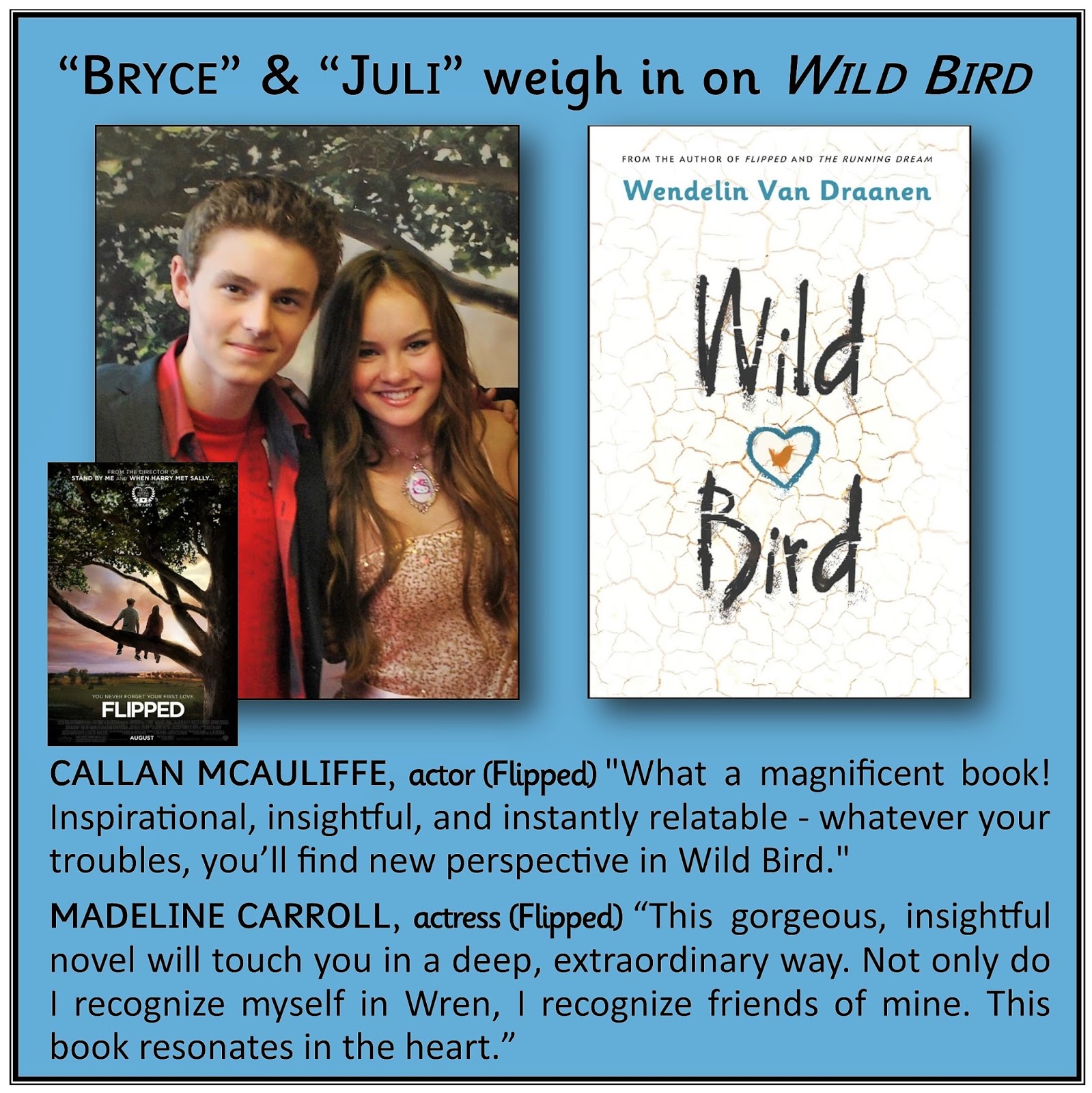 For all of them, Flipped was one of their early projects, and seven years later, Callan and Madeline were both kind enough to make the time to read and blurb Wild Bird. I love what each of them had to say (see opening graphic), and it means a lot to me that the book resonated with them.