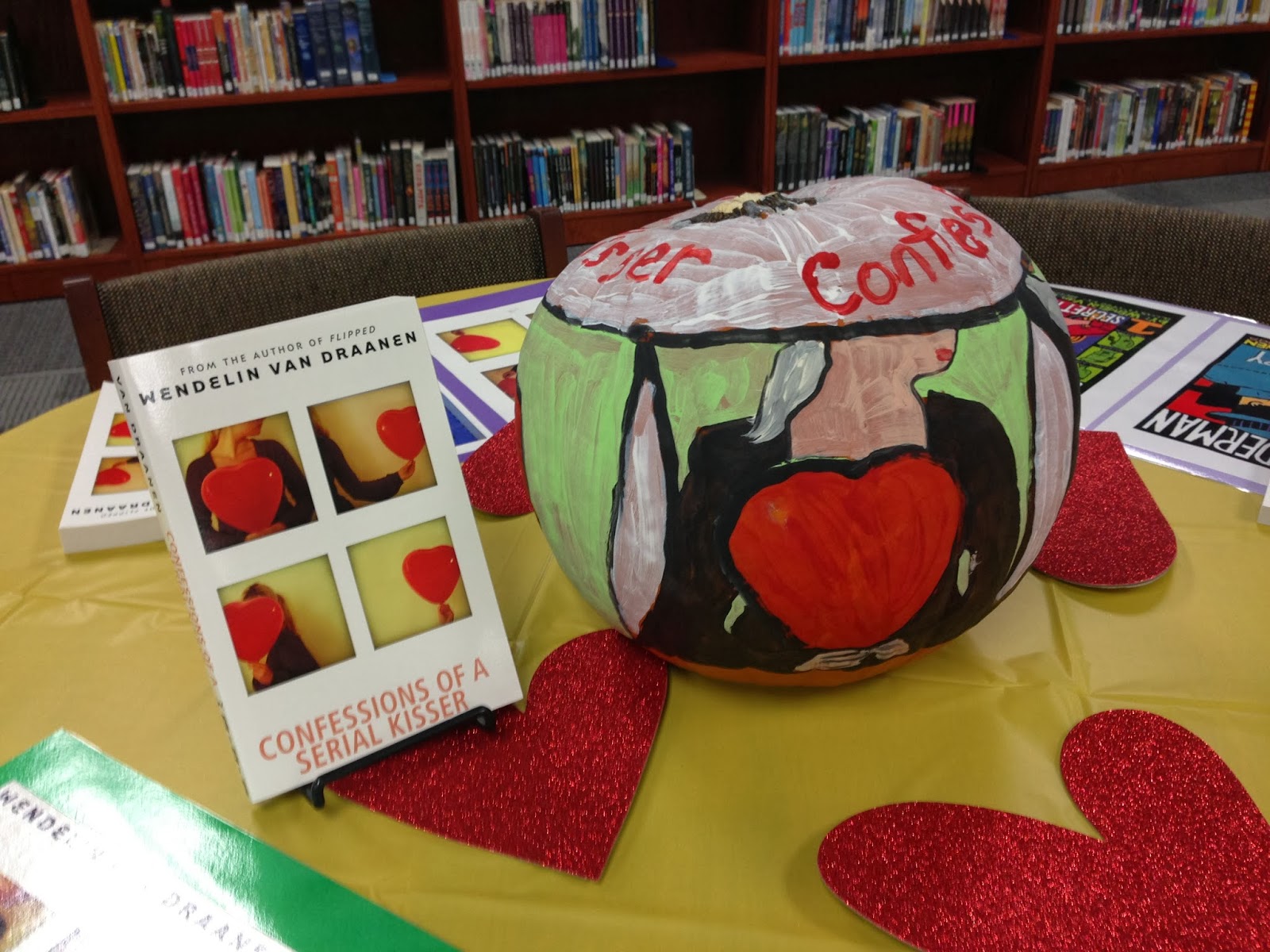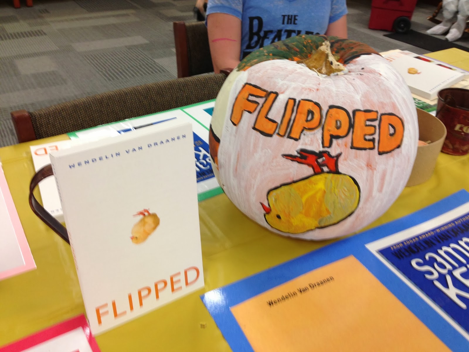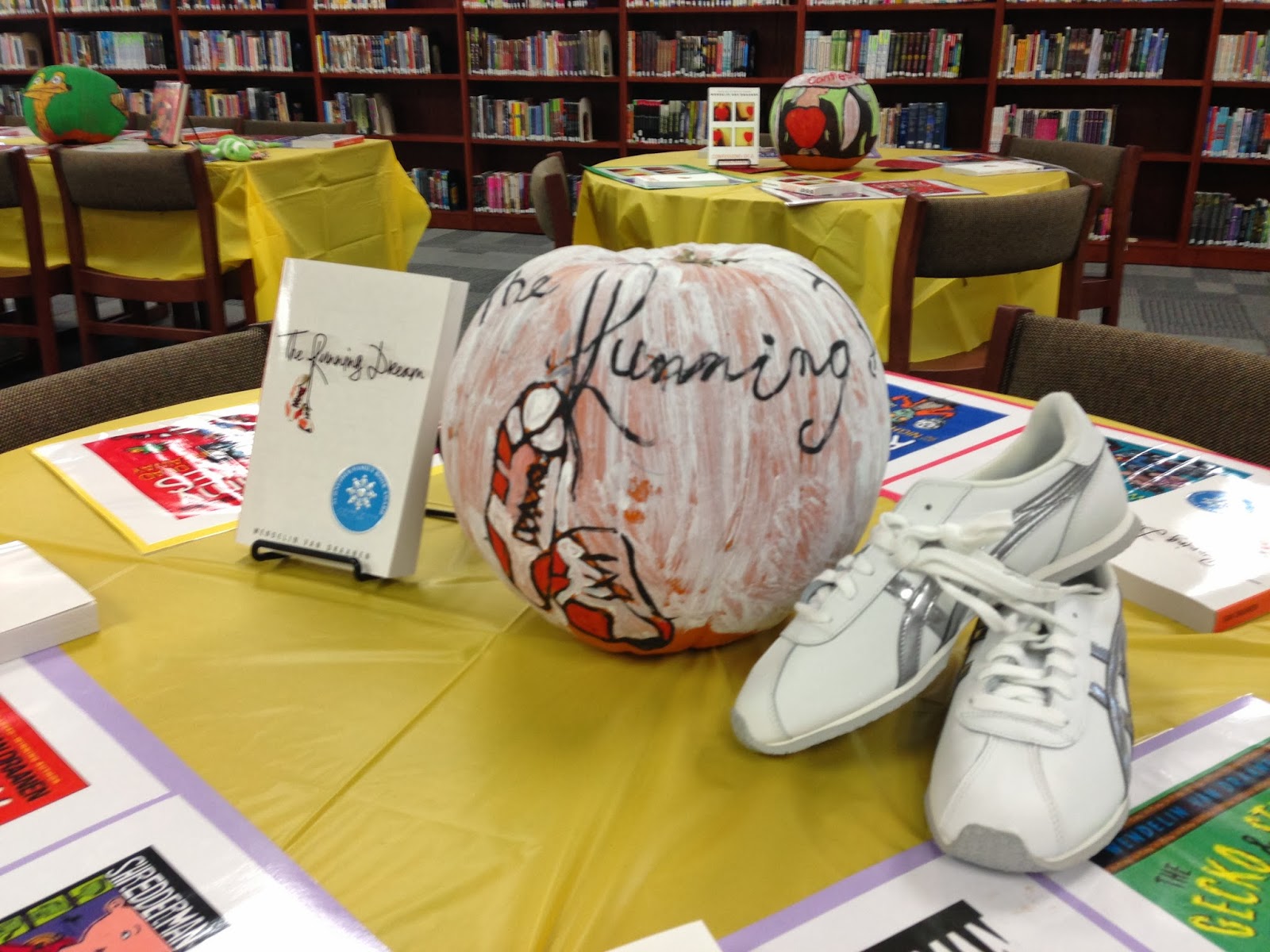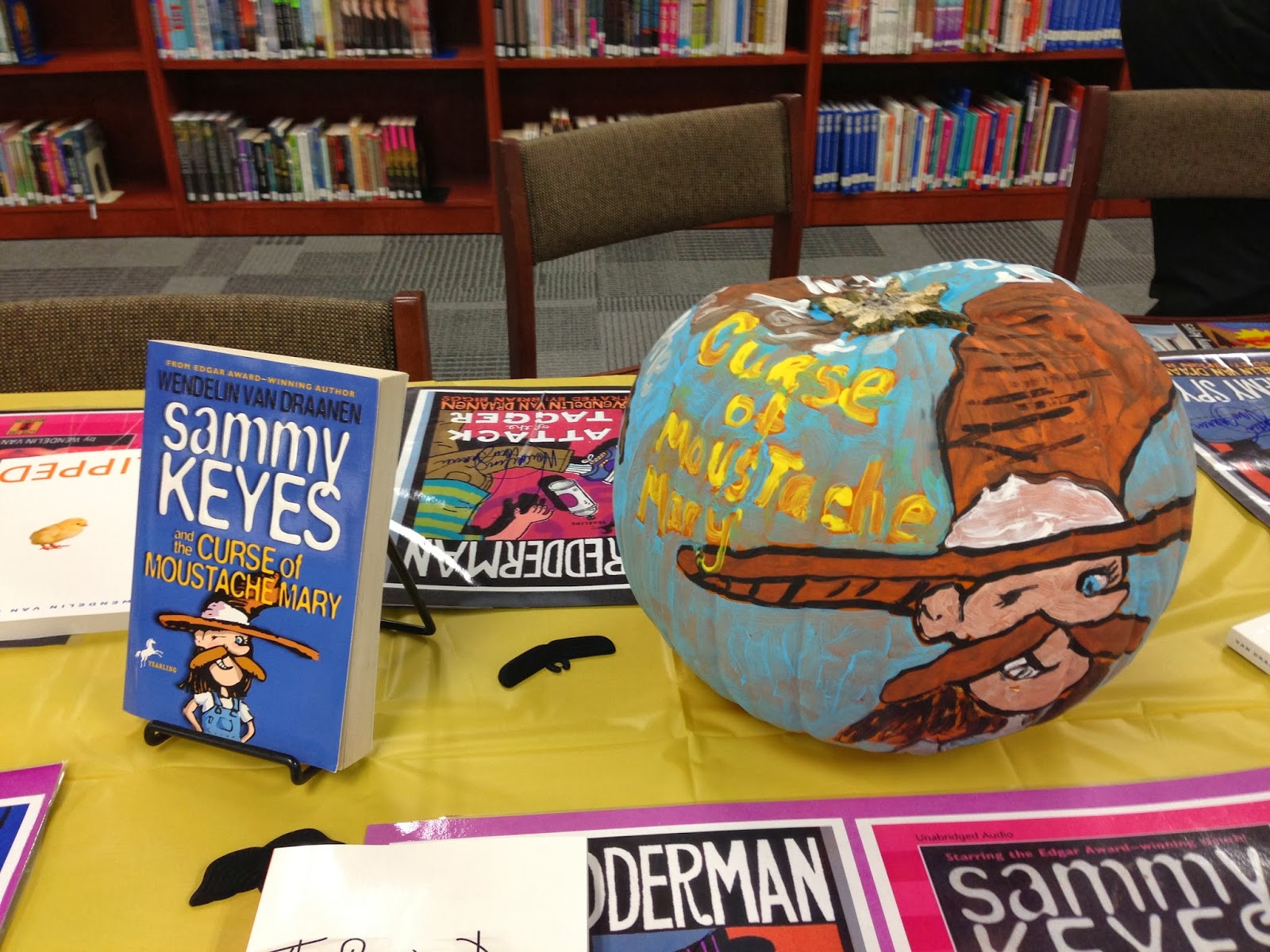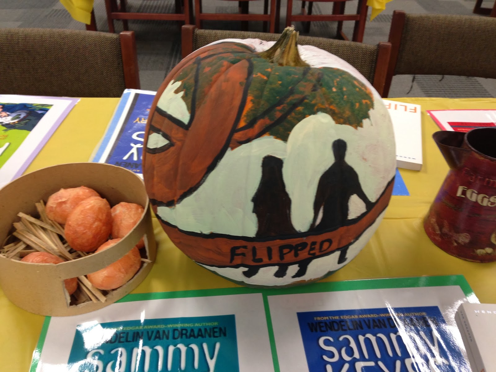 I am between trips, so today's entry is a little photo journal of the special lunch Central Middle School hosted for me when I visited them last week in Oklahoma. Those of you who know me (and Sammy!) know that Halloween is my favorite "holiday" so you can imagine how giddy I was when I saw all these painted pumpkins and decorations on display at the school lunch tables.