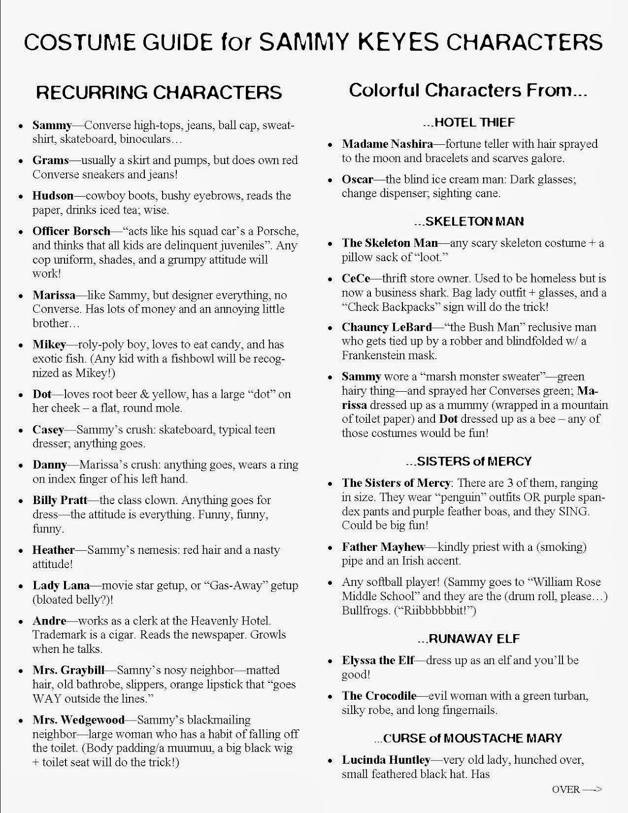 *Here are a bunch of costume ideas, in case you didn't see them on the Sammy Keyes FaceBook page: