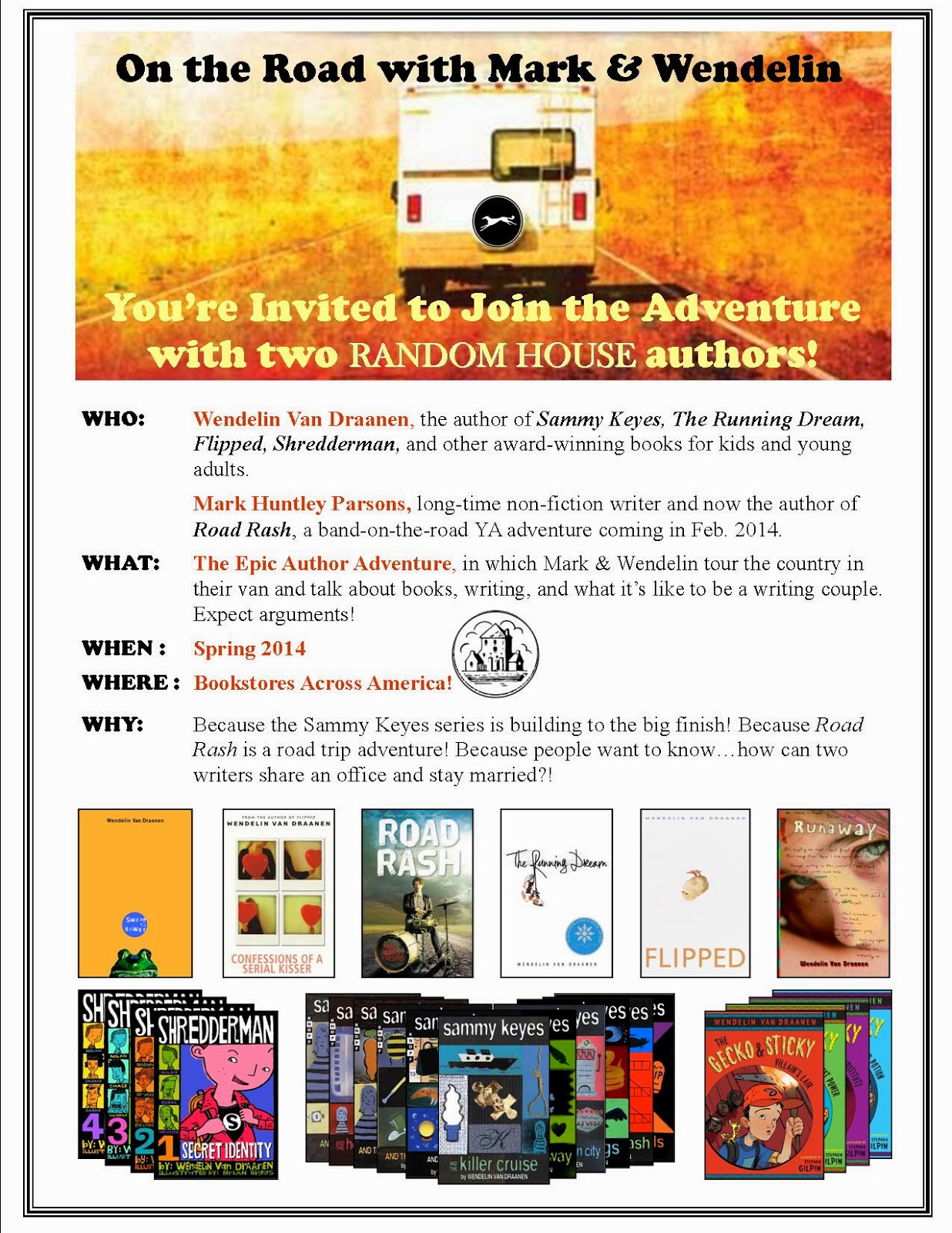 In anticipation of my coming to visit, the school encouraged kids to also read Sammy Keyes and the Hotel Thief, or Flipped, or The Running Dream.