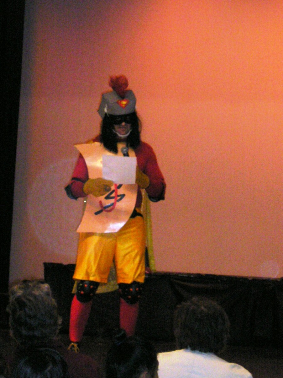 First up, the principal, dressed as Justice Jack (in the Golden Gloves of Justice!).