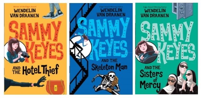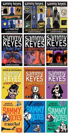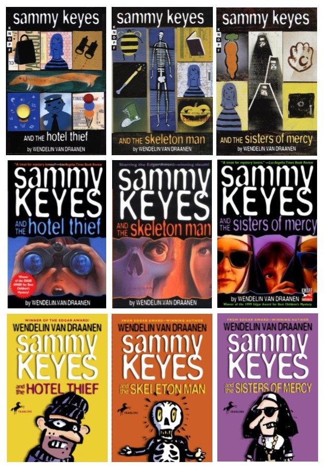 Meanwhile, thanks so much for checking in, (And for those of you who have been waiting years for this post, thank you for your patience and steadfast loyalty.) I will leave you with a compilation of the first three Sammy paperback covers over time, from the original puzzle-piece art (which was only out in paperback for a short time), to the realistic interim art (lasted about 8 books, after which it was replaced by) the "cartoony" art (which was available up to but not including the very last book), to the upcoming art (to be released beginning May 2nd).