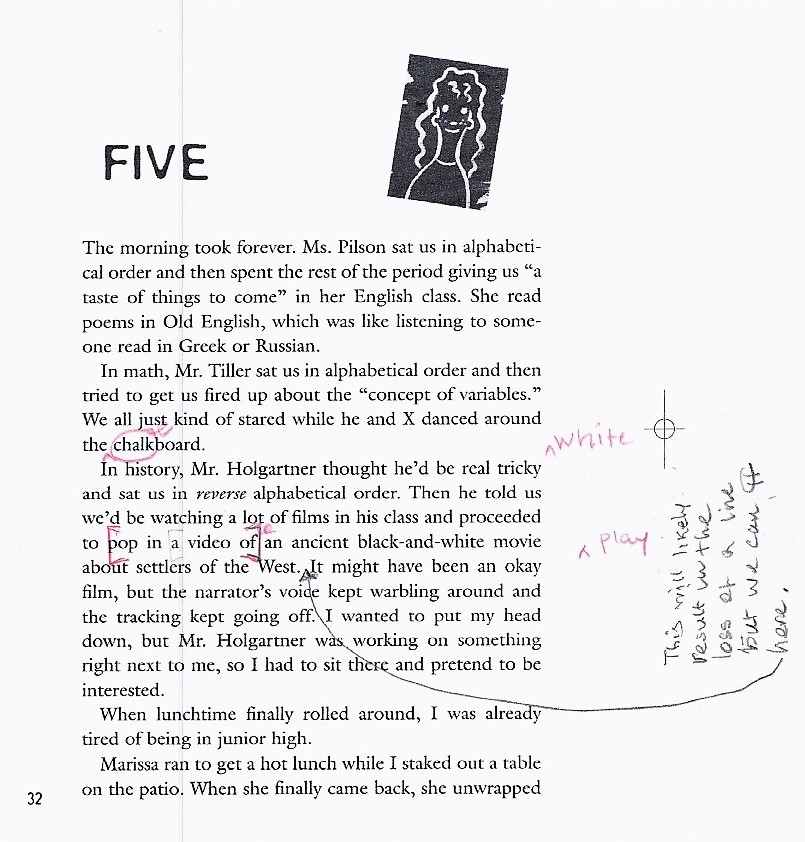 I was told they just weren't printing clearly on the paper that was now being used. That situation coupled with the weirdness of having the squares in the paperback pages led to the logical decision to stop adding them to the interior pages in upcoming titles. That is why, from Wedding Crasher (book 13) on, the bits of art no longer appeared past the Prologue page.