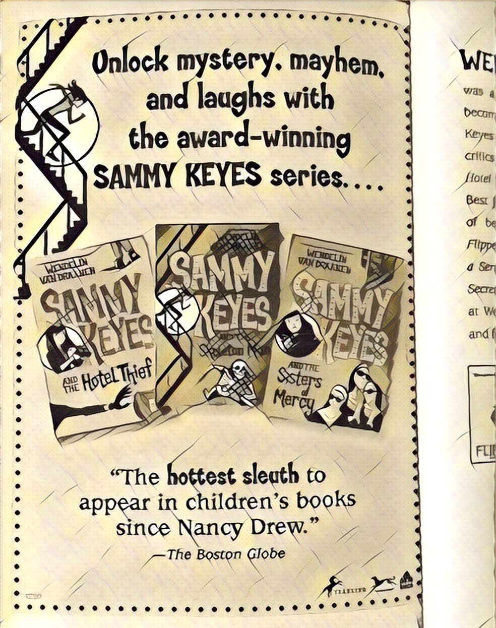Right, right! Sorry! I'm just excited!! And honestly, I don't know where to begin. Some of you have been reading this blog since I first started soliciting your input regarding new Sammy Keyes artwork, and you have probably wondered, what the heck ever happened with that? Well, it's a huge thing, redoing the art of 18 books! And in the end, it's a business decision. Do sales--past and future--warrant an investment in new art? And, if so, what is the purpose for the investment, and how will the new art serve that purpose?