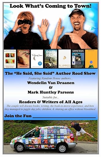 Really hope to see you at one of the tour stops, but if we're not coming to your area on this loop you can follow along.on Facebook at SammyKeyesBooks, and on Twitter at @WendelinVanD (for the "she said" perspective) and @MarkHParsons (for the "he said)-- we'll be very active there. Please help spread the word!