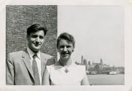 On Thursday, July 16, 1959, poets Sylvia Plath (1932-1963) and Ted Hughes (1930-1998) passed through Fargo on their cross-country trip. They left Cornucopia, Wisconsin early that morning, eventually taking, no doubt, Highway 10 through Detroit Lakes, etc., passing through Moorhead and Fargo late that afternoon and finally camping out in a grove of trees near the school in a tiny town “just west of