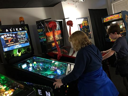 Classic Bally machine row!This year (last weekend) was a little different, because Brad was out of town at a wedding, but since his boys are now in college, they went on their own, so we still had most of the crew together for a Friday night dinner at Bell’s Brewery’s Eccentric Cafe (pictured below) and our traditional lunch with some other pinball fans at CJ’s Pub. And I took the boys on Saturday night to Arcadia Brewing (pictured above), though I was the only one who could drink! (They had great barbecue though!)