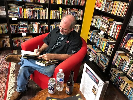 I read the prologue of the novel as well as part of a later chapter, since Lon Czarnecki came out — Lon is an old friend who has watched many horror films with me… and thus has a character named after him in the book. So I read a portion of a chapter that his character appears in. Some other friends and fans stopped in as well, and we had a great chat about the book and writing and more after the reading.