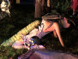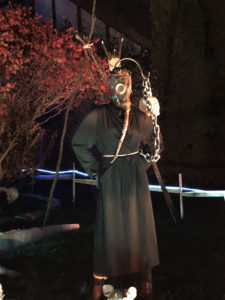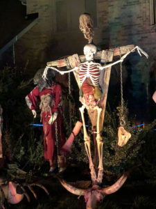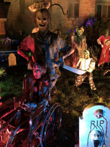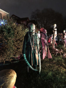 Naperville has a “haunts” trolley that takes people around to notable Halloween-decorated houses in October and not surprisingly, the trolley makes a stop at Leo’s every day of the season so riders can see this must-stop spot. (I watched one stop the night I was there and throngs got out to marvel at the dozens of creepy statues (and fog and live costumed haunts).
