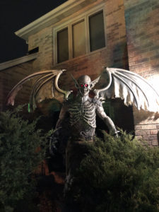 He also happens to put on an elaborate haunted house every Halloween in his yard with tons of yard statues, fog, lights and some marauding ghouls. He’s been featured in the media for his elaborate setup and the trick-or-treaters love it.