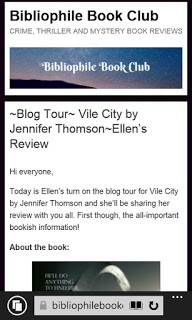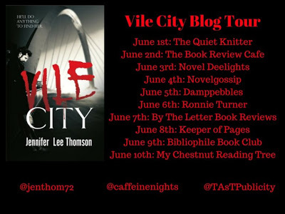 Thanks to Ellen for her review of Vile City on the Bibliophile Book Club blog https://bibliophilebookclub.com/2017/06/09/blog-tour-vile-city-by-jennifer-thomsonellens-review/