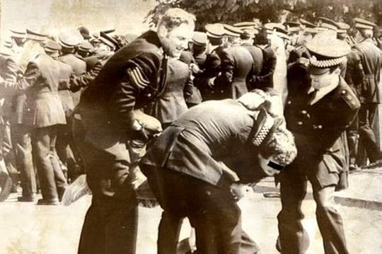 The police beating up a cool miner during the Thatcher era.