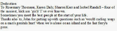 I dedicated Hell To Pay to my mum Rosemary and Aunt Isobel, as well as two of my best friends who sadly died young. They are the two strongest women I know and Nancy Kerr is a strong female protagonist and the star of the the Die Hard for Girls series of books. Tip: I dedicated the book to them, but could just have easily have named my main character after them. Instead I named Nancy Kerr after two of my best friends at school. Remember, dedicating your book to someone makes a wonderful gift. Don't waste the opportunity your hard work's brought about by not using it.
