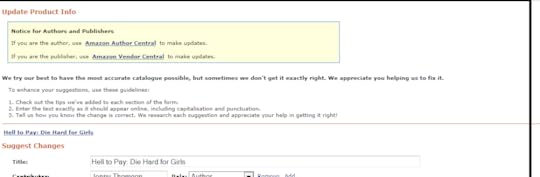 Tip – Ignore the message for publishers and authors where the publisher is told to update the feed sent to Amazon and the author is told to contact their publisher. I know for a fact, that my publisher sent the correct details to Amazon who keyed it in wrongly.