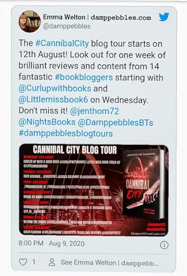 The Cannibal City blog tour starts on Wednesday, August 12th