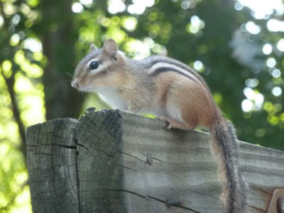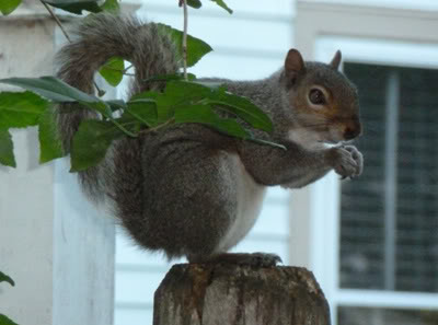 2. My Facebook Friend, Ruth, also said that when squirrrels stick their teeth into pumpkins but don't eat them, it's because the squirrels are thirsty. So I'm also going to put a pie pan of water near the birdfeeder (away from my pumpkins!) to see if that helps.
