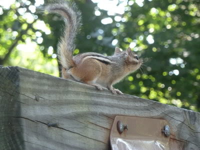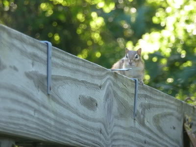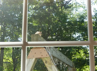 He tried so hard to get down there to those feeders, but not even the squirrels can do it. I think I've finally found a squirrel-proof feeder--but you have to build a big wooden swingset first! :-)