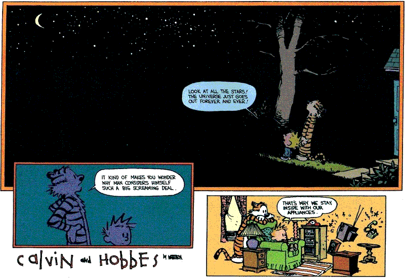 Calvin: "Guarda tutte quelle stelle! L'universo continua all'infinito!"