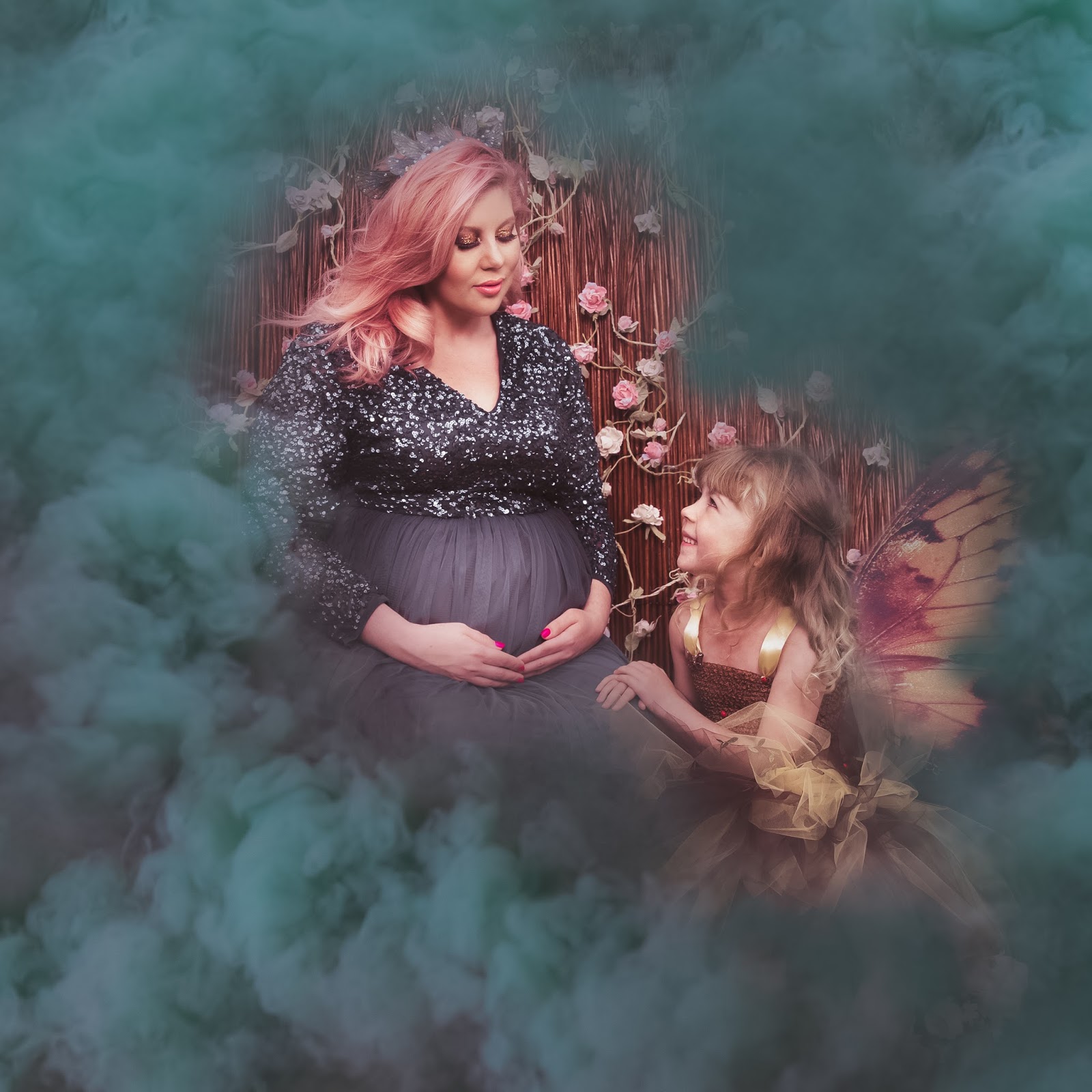 The shoot was held at my house, in my garden with smoke bomb magic added after Darcy, bump and I were far away!