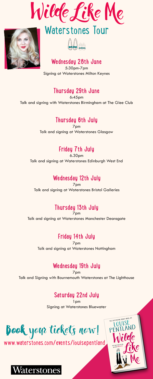Like many authors do, I've decided to do a book tour around the UK to celebrate my new (book) baby and meet some of the readers who'll be enjoying it. In previous years I've done the traditional sit-at-table-and-sign thing but this year I wanted to do something a bit more. At each venue I'll be either giving a reading, answering any questions, signing your copies, enjoying cocktails (yes, a Wilde Like Me cocktail has been created and will be served at some venues!!) and just being a bit more casual about everything. The event is ticketed and spaces are much more limited because, perhaps selfishly, I want to actually experience the meeting of each person and have a proper author-reader evening, rather than a rushed, fleeting experience. Although that means not as many people can come, I think it means the events are FAR better. Quality over quantity and all that.