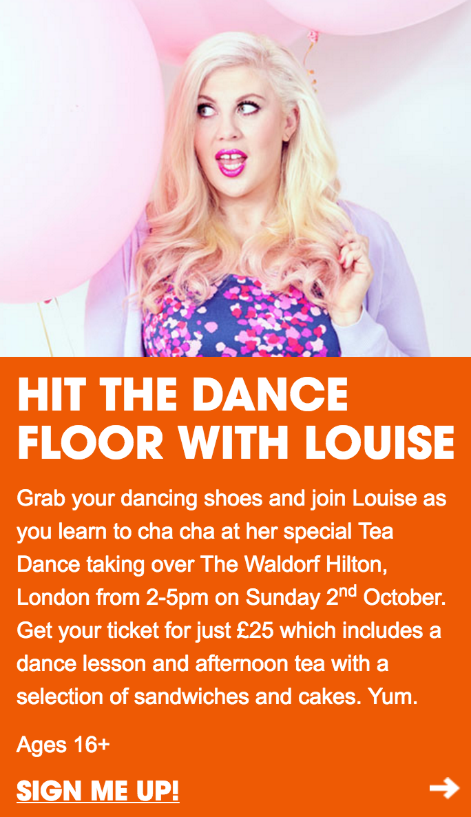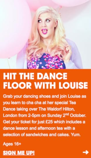 It's glorious. It's vintage loveliness at it's best. A gorgeous dancing room at the Waldorf in central London, tea (or other drinks if you're like me and think tea tastes like tepid puddles), cakes, sandwiches and then, dancing. Like proper old school dancing. Can you dance? No? Me either. Stand Up To Cancer are providing a fabulous choreographer to teach us some steps and have a great time.