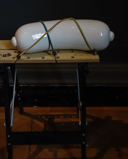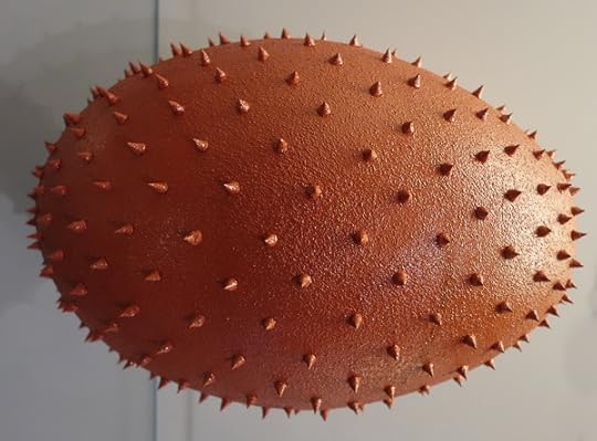 Love this kind of sculpture too. It’s glass art, I think, in the V & A, a spiky red egg about a foot long. Mounted vertically, standing on one end, but I turned the picture sideways. More dynamic this way, more like a UFO. A door opens in the tip of each spike and out step 279 ants from Mars. “Can we interest you in some real estate? We’re offering very nice homesteading tracts in Nix Crater, with extremely pliant settlement terms.”