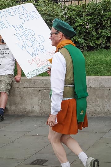 In London, maybe because I wasn’t a native, the crazy people seemed cuter than in the US. This man in front of the old Tate museum is doing a Scottish jig while carrying signs relating to the Bible and to global politics. Seems more like an eccentric than a dangerous psycho like back home.