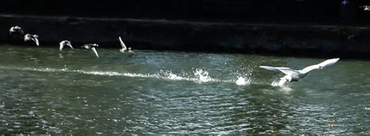 Birds landing and taking off in the Thames.