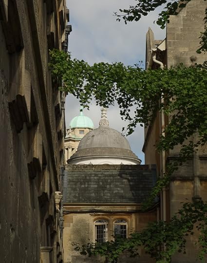 So now we’re in Oxford, walking around town. Lots of parts are fenced or walled off, these are the “colleges.” Hard to quite understand how it works, all these separate colleges, each with dorms, dining hall, teachers, and student body. Parts of a university.