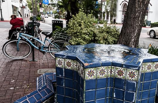 Back at Santa Cruz’s Four Mile Beach here in this picture. I often think of this spot as being where my muse lives. It’s near a stone tower at the south end of the beach. I always like to go here and write EADEM MUTATA RESURGO in the sand, which means “The same, yet changed, I arise again.” That’s an inscription on the gravestone of a mathematician, Jakob Bernoulli, who studied a famous type of spiral curve (the logarithmic spiral seen on seashells such as the nautilus, or the humble snails). It also appears in my novel Frek and the Elixir. For me, it’s an encouragement for writing yet another novel. Since Frek, I tend to write in the wet sand at a beach pretty much every time I’m working on a novel. Good luck…or an invocation of the muse.