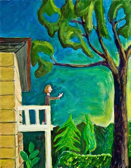 But primarily the painting is about the events in The Big Aha. The way I painted Zad relates to two earlier paintings of him which I’ll reprint below, Louisville Artist and Night of Telepathy.