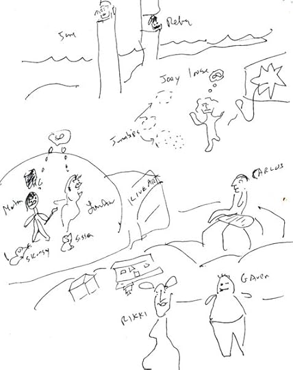 Morton and Loulou met at a picnic in Louisville—the scribbly drawing above was my rough plan for the chapter about them.