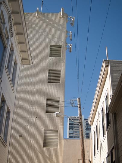 Speaking of artists, I saw the legendary SRL artist, Mark Pauline last week, demonstrating his latest creation in a parking lot outside the funky Tenderloin Phoenix Hotel, where an art show was taking place. (That’s not the Phoenix in the background, that’s the Federal Building with the IRS and the FBI, cowed (one hopes) by Mark’s claw.)