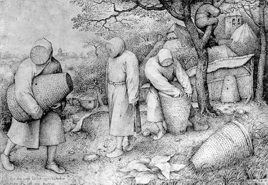 The picture shown above is called The Beekeepers. It's disturbing and surreal. Bruegel drew this image in 1568, shortly after the patriots, the Count of Egmont and the Count of Hoorne were beheaded at behest of the Spanish Inquisition. My sense is that those straw hives represent the baskets into which Count Egmont's and Count Hoorne's heads dropped after being lopped off by the executioner's sword in the Grand Place.