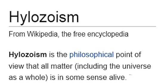 The notion that I'm leading up to is hylozoism. This is a real word, you can find it in Wikipedia. I got so enamored of this word that I even wrote a novel called Hylozoic, in which everything is alive—even the rocks.