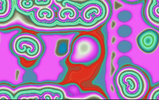 In the years to come, I got ever more involved involved with CAs. The way they work is that, in a CA, you can think of the onscreen pixel as being a little computer, with all of them updating in parallel. One trick that I liked to use continuous values for the states of these pixels or cells, see my free software CAPOW, available online.