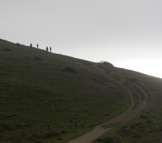 I had a little moment of that joy-with-the-given at the San Francisco airport, simply enjoying the architecture, the awesome height of the vaulted hall, the light glancing off the shiny stone floors and rendering everything in shades of greenish gray, and us travelers scattered about like the stylized figures in a maquette.