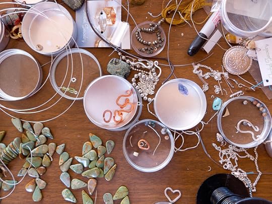 It's sort of alchemical, the way she turns bits of stone and metal into adornment. I've always loved cluttered workbenches.