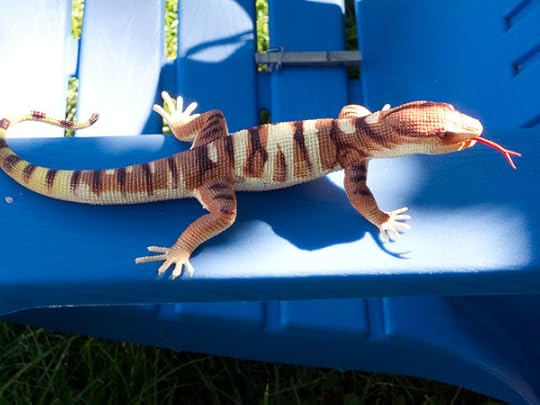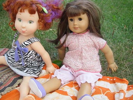 I didn't get any pictures of Georgia at work because mostly we were at her house with her husband, kids, and the kids' toys. Like these two dolls. Georgia's daughter actually got me to start enjoying the music of Taylor Swift! I gave Georgia's son that "Cow and UFO" painting I was talking about in the previous blog post. He likes it.
