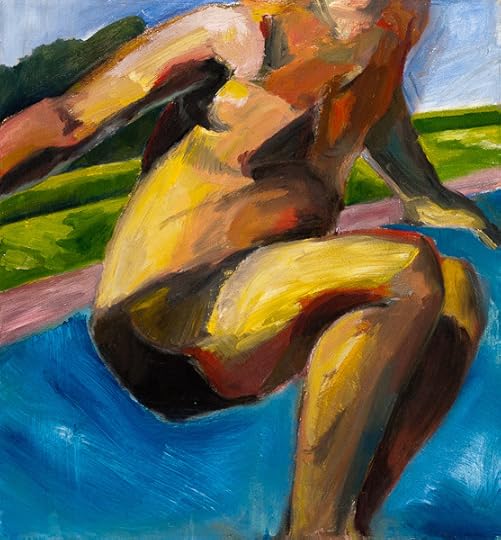 I got a photo of a nice, somewhat cubist painting Georgia did of me a few years back—it's based on a photo of, she says, me in mid-air, jumping off something. I get kind of hyper when we go swimming.