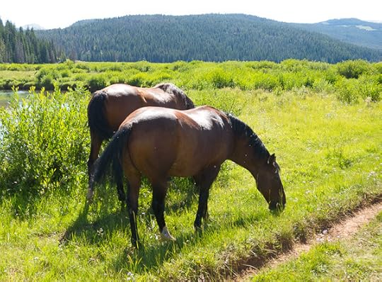 The ranch has about twenty horses for the guests to ride—it's a dude ranch, but in a fairly mellow way. The place has a bit of a hippie feel, even though all of the guests (other than our daughter and her husband) looked to be in their fifties, sixties or even seventies. That's the horse Alice that I rode one day up there.