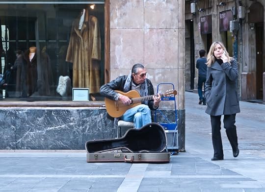 This guy was playing great Spanish-style guitar in the street by the cathedral. And dig the woman hurrying by with her cell phone.