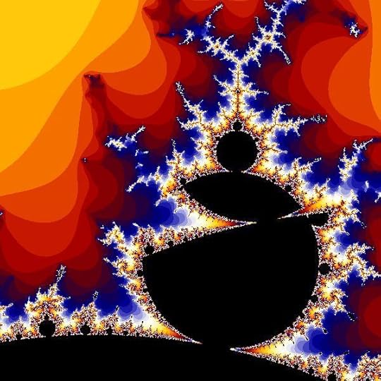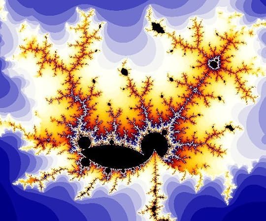 I've been thinking some more about ways in which Mandelbrot resembled the Mandelbrot set, it's a conceit I'm bent on playing with. As I mentioned yesterday, he was rather round about the middle, even bulbous, and his clothes and his head were indeed adorned with any number of fine hairs. He appeared and disappeared from my view several times; he'd get up and leave the room and then return. Perhaps each time it was a different bud of him that came back in!